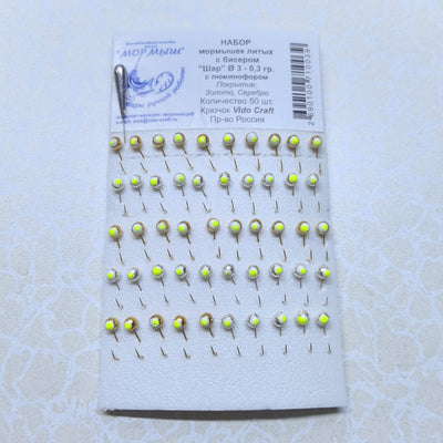 Набор мормышек "Шар ф3" золотые Фосфор 50шт/уп №10-0.3g