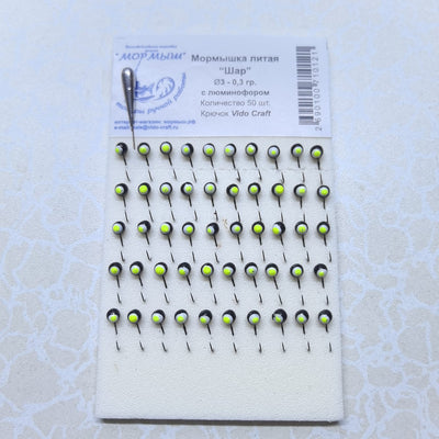 Набор мормышек "Шар ф3" черный. Фосфор 50шт/уп -0.3g